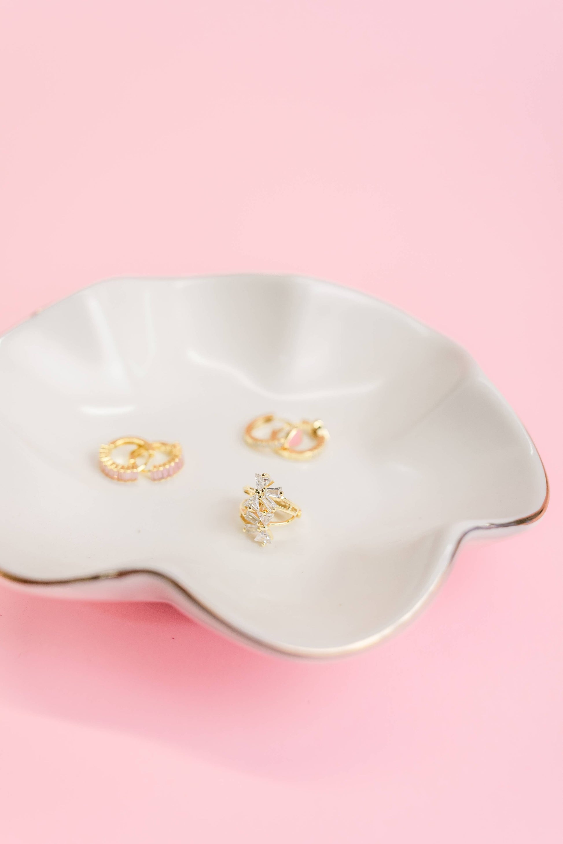 Design: Dainty huggie hoops with crystal-embellished bow accents