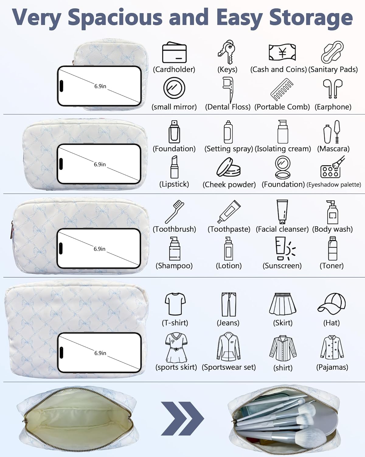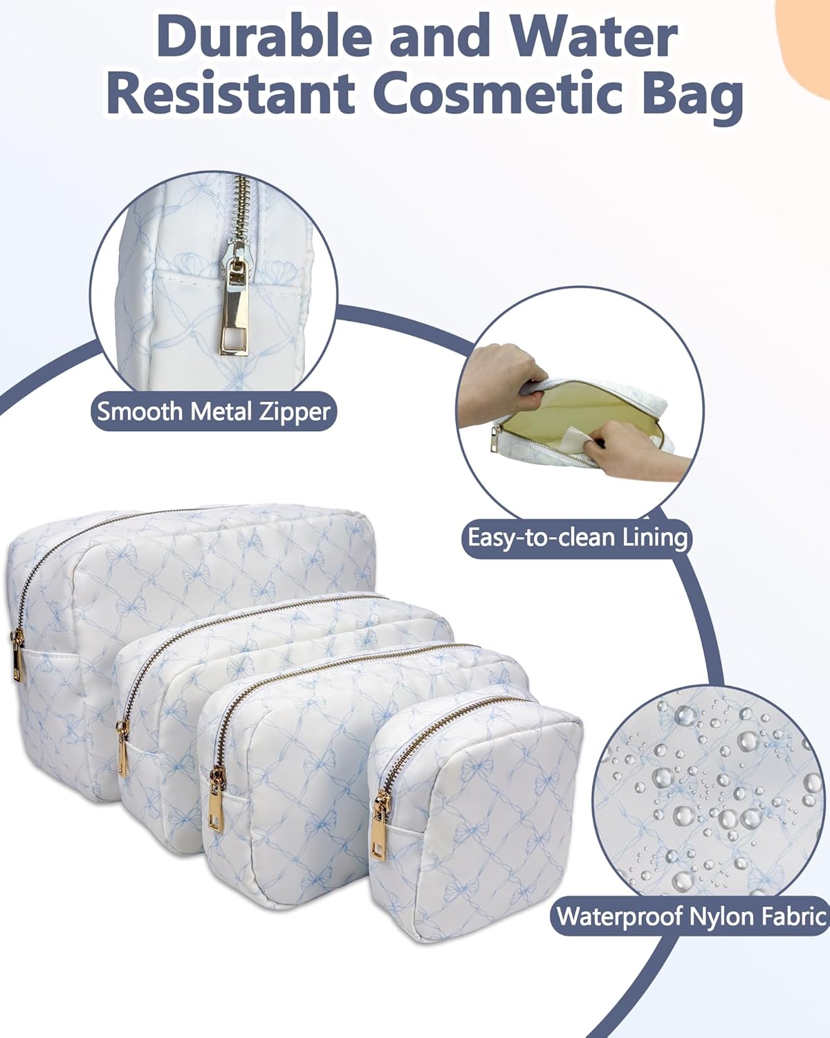 Pre-order 4PC Nylon Cosmetic Bags - Blue Bow
