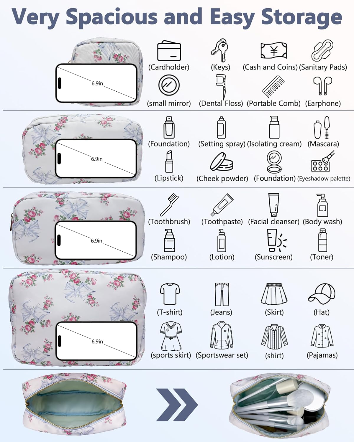 Pre-order 4PC Nylon Cosmetic Bags - Floral Blue