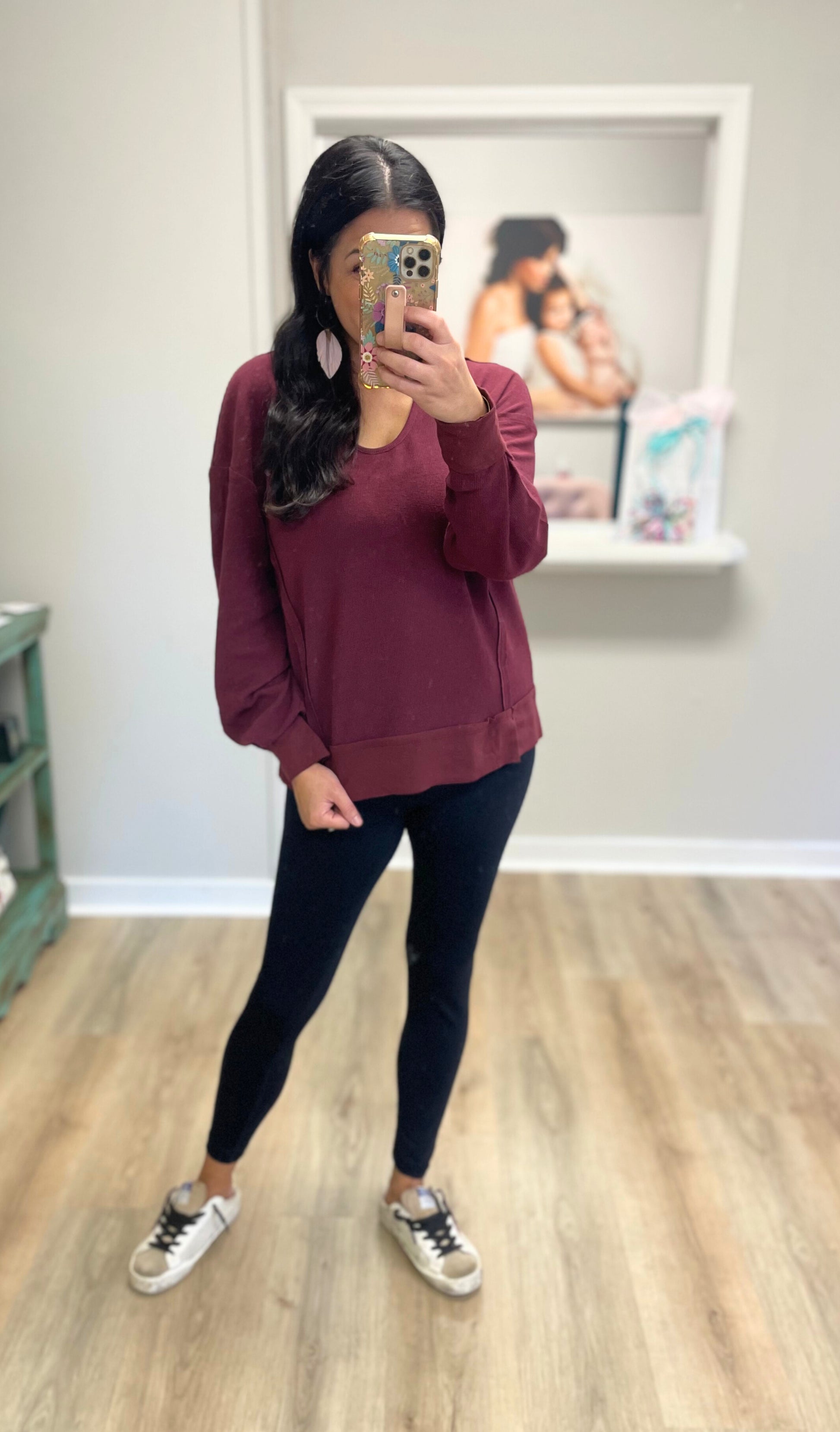 The Cozy Cutout Waffle Top - Maroon
