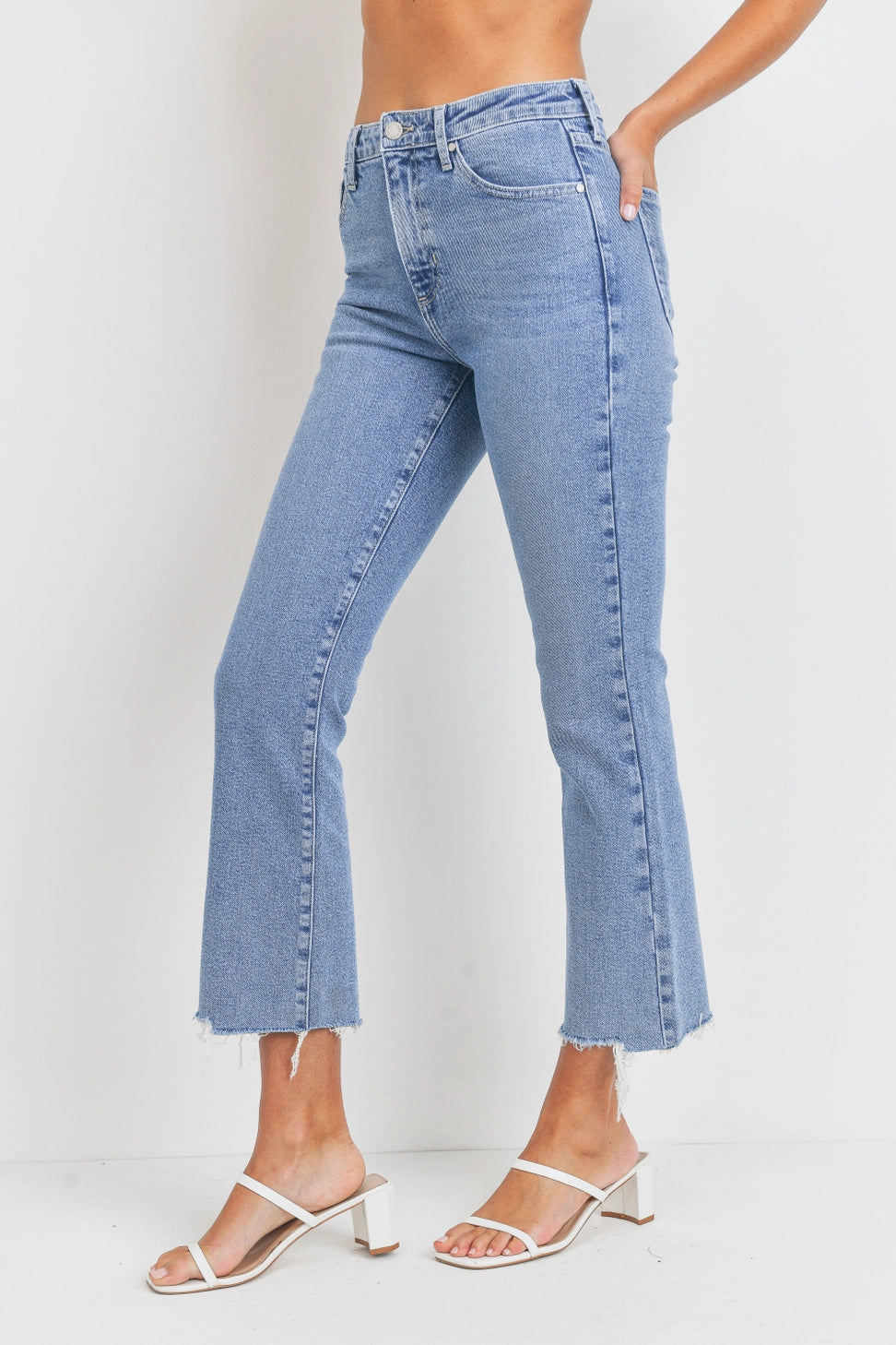 Meet your new favorite denim! These light wash cropped flare jeans are the perfect mix of vintage vibes and modern comfort. Designed with a flattering 10.5” rise, 27” inseam, and 8” leg opening, they give you that effortlessly chic silhouette that works with everything from sandals to sneakers to booties. The cropped flare cut makes them a year-round staple — casual for everyday wear but easy to dress up too.