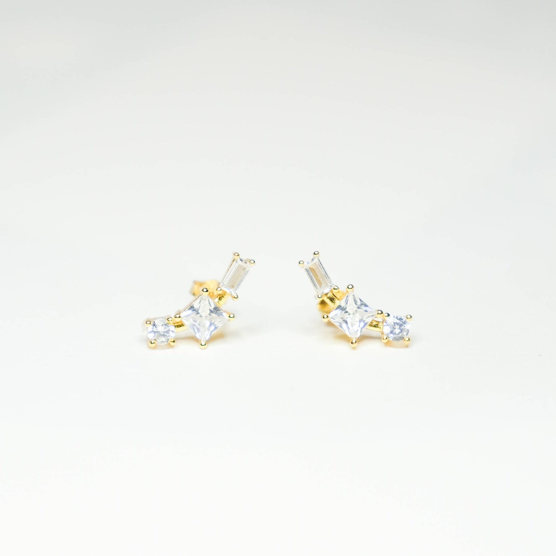 Add a hint of glamorous sparkle to your everyday style with our Twinkle Cluster Climber Stud Earrings. Crafted from sterling silver and plated in luxurious 18k gold, these chic earrings feature a cluster of shimmering pave stones that gracefully climb the ear for a modern yet feminine look.